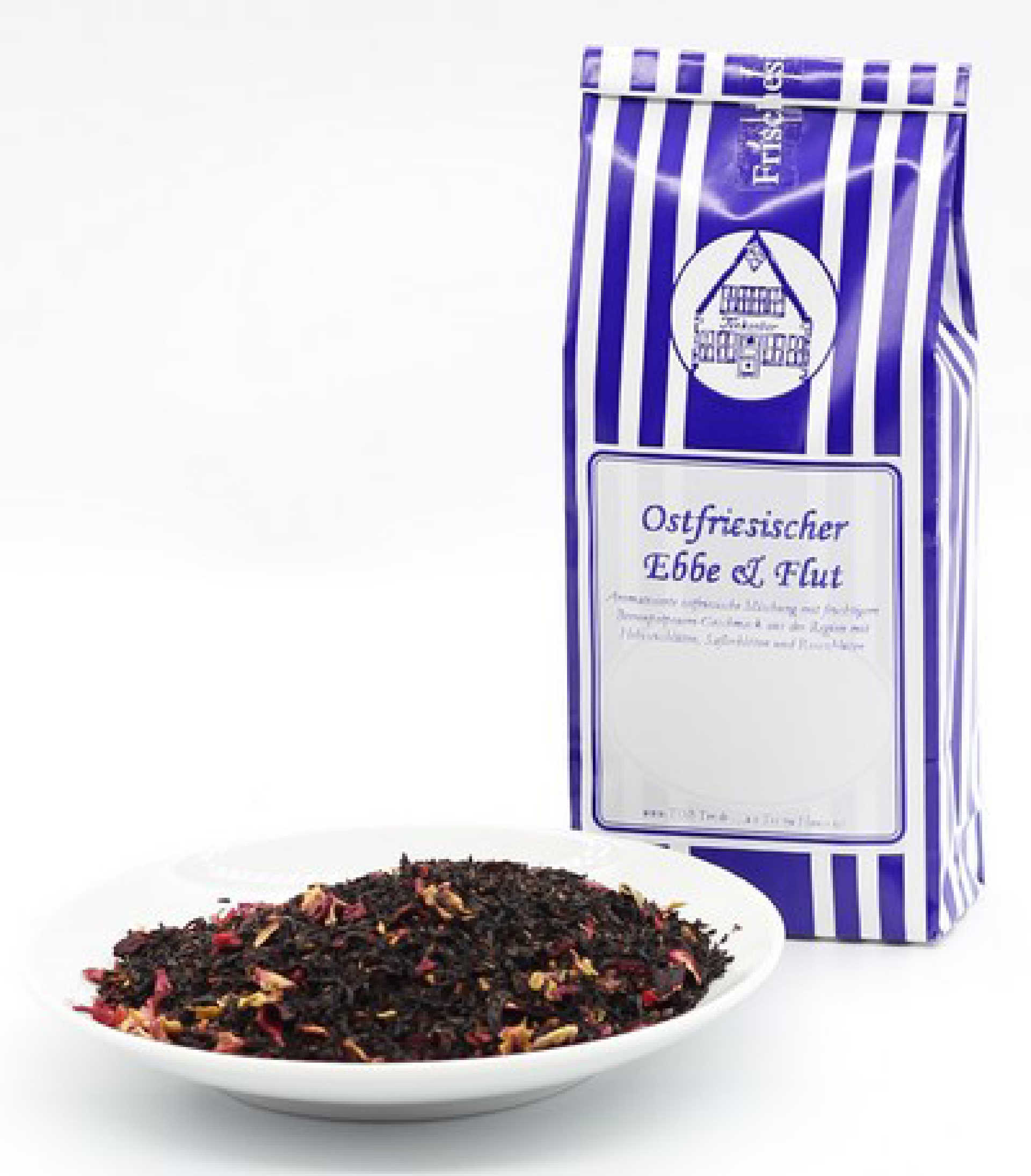 Aromatisierte ostfriesische Mischung mit fruchtigem Beerenpotpourri-Geschmack aus der Region mit Hibiscusblüten, Saflorblüten und Rosenblüten
