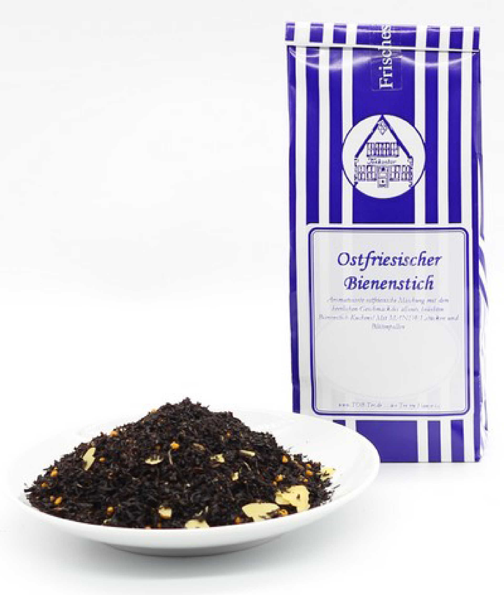 Aromatisierte ostfriesische Mischung mit dem herrlichen Geschmackdes allseits beliebten Bienenstich-Kuchens! Mit MANDELstücken und Blütenpollen