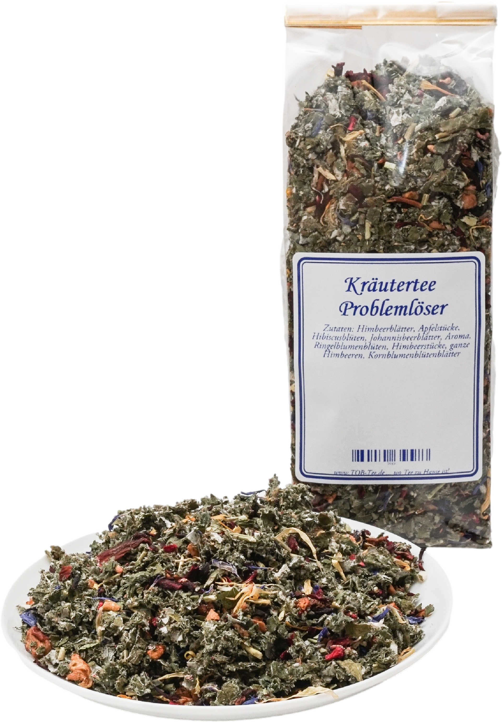 Aromatisierter Kräutertee mit feiner Himbeer-Note und Himbeerblätter, Apfelstücke, Hibiscusblüten, Johannisbeerblätter, Aroma, Ringelblumenblüten, Himbeerstücke, ganze Himbeeren, Kornblumenblütenblätter