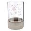 Windlicht "Pusteblume" grau/klar, mit bunten Blumen "Blumen sind das Lächeln der Welt"