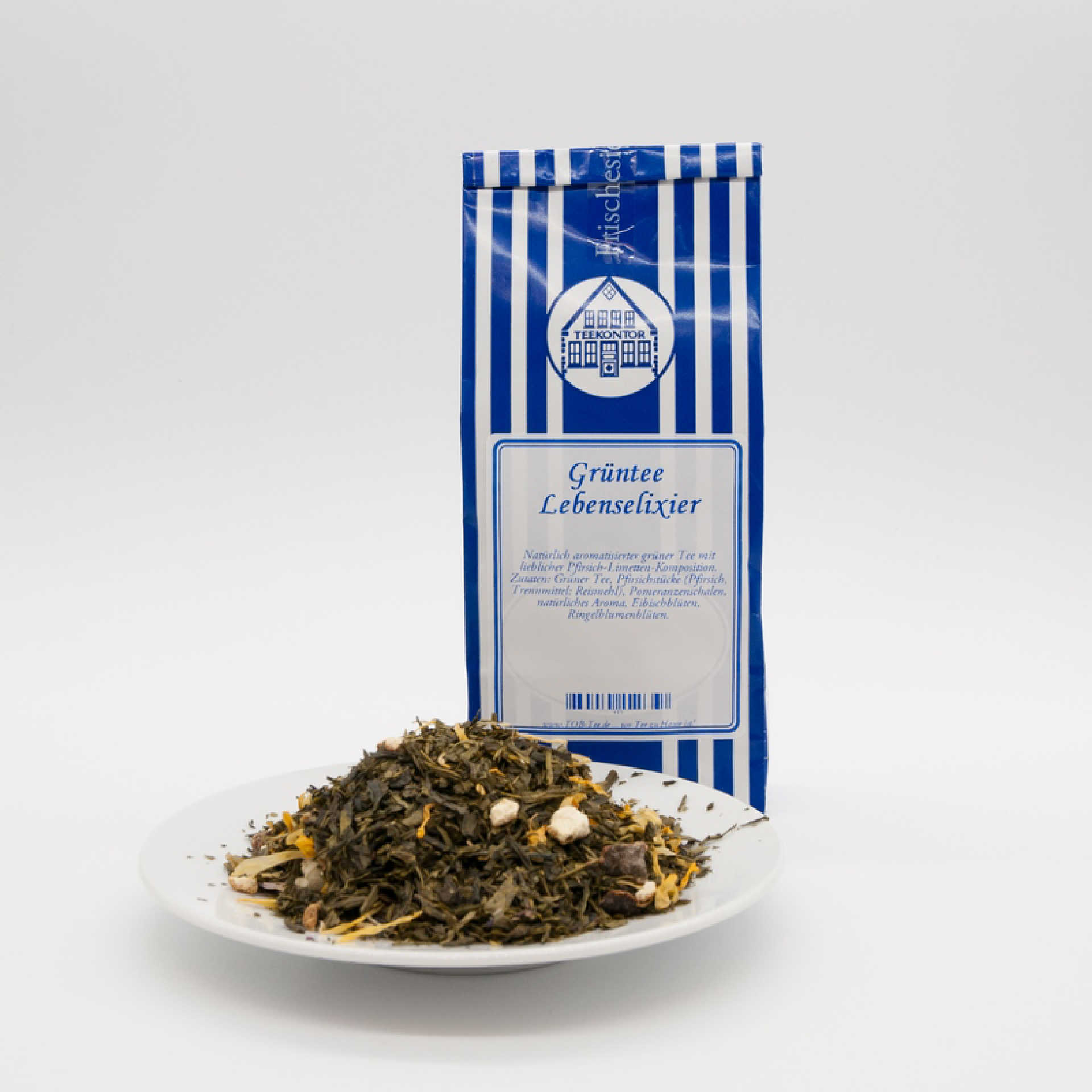 Natürlich aromatisierter grüner Tee mit lieblicher Pfirsich-Limetten-Komposition. Zutaten: Grüner Tee, Pfirsichstücke (Pfirsich, Trennmittel: Reismehl), Pomeranzenschalen, natürliches Aroma, Eibischblüten, Ringelblumenblüten.