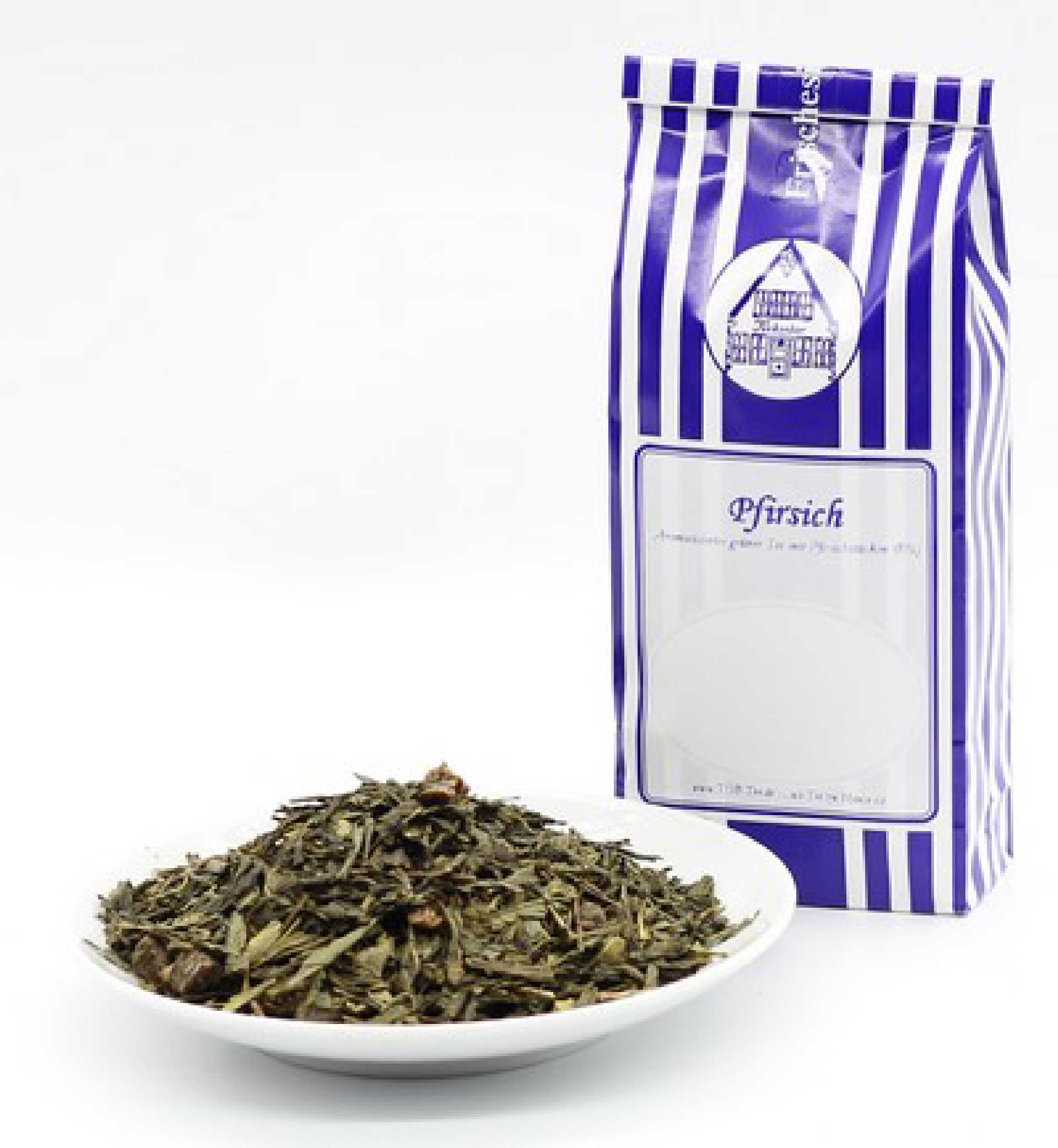 Fruchtiger Grüntee mit Pfirsichstücken – sanft, lieblich, sommerlich.