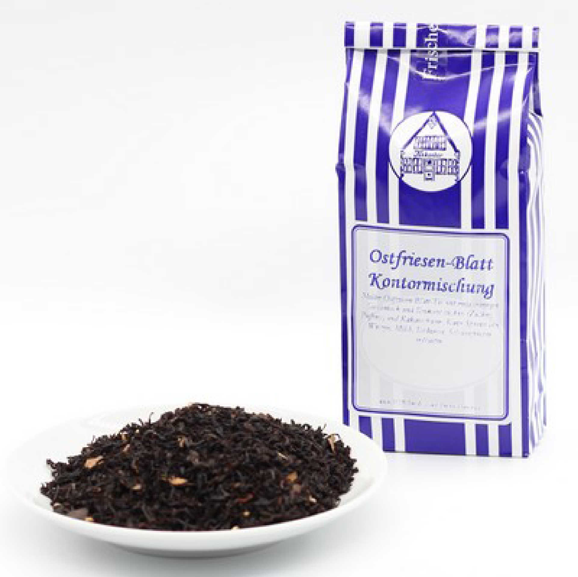 Milder Ostfriesen-Blatt-Tee mit mild-cremigen Geschmack und Krokantstücken (Zucker, Puffreis) und Kakaoschalen. Kann Spuren von Weizen, Milch, Erdnüsse, Schalenfrüchte enthalten