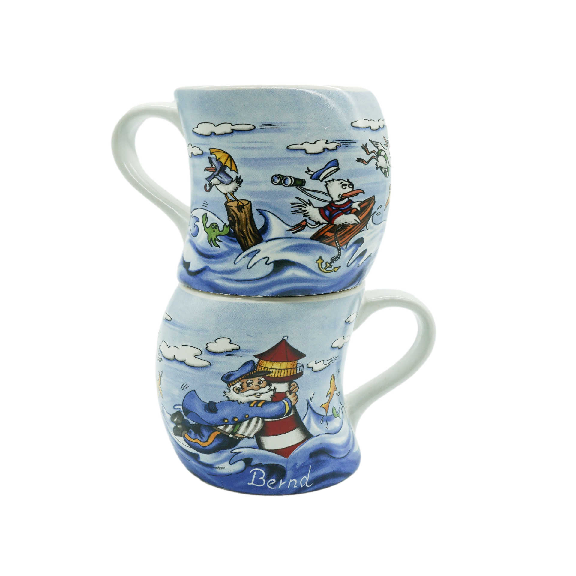 Mit Innendekor "Ebbe und Flut"Für alle, die etwas Ausgefallenes suchen! Wir gravieren jeden Namen, Kosenamen, Vereinsnamen, etc. auf den Keramikbecher. Böse Zungen behaupten, wir würden die Becher be Windstärke 12 draußen stehen lassen, weswegen sie so "vom Winde verweht" aussehen. Bitte geben Sie die Aufschrift am Ende des Bestellvorgangs im Feld "Anmerkungen" an!