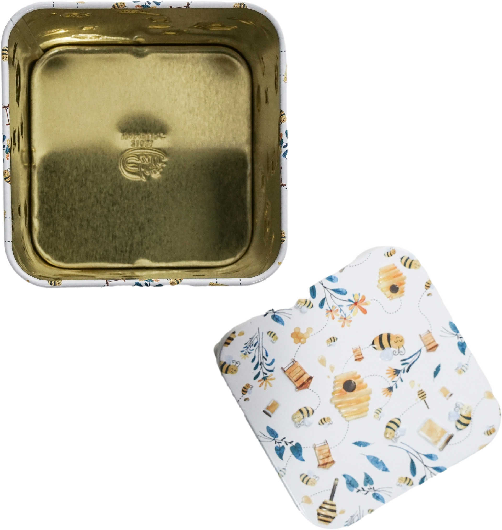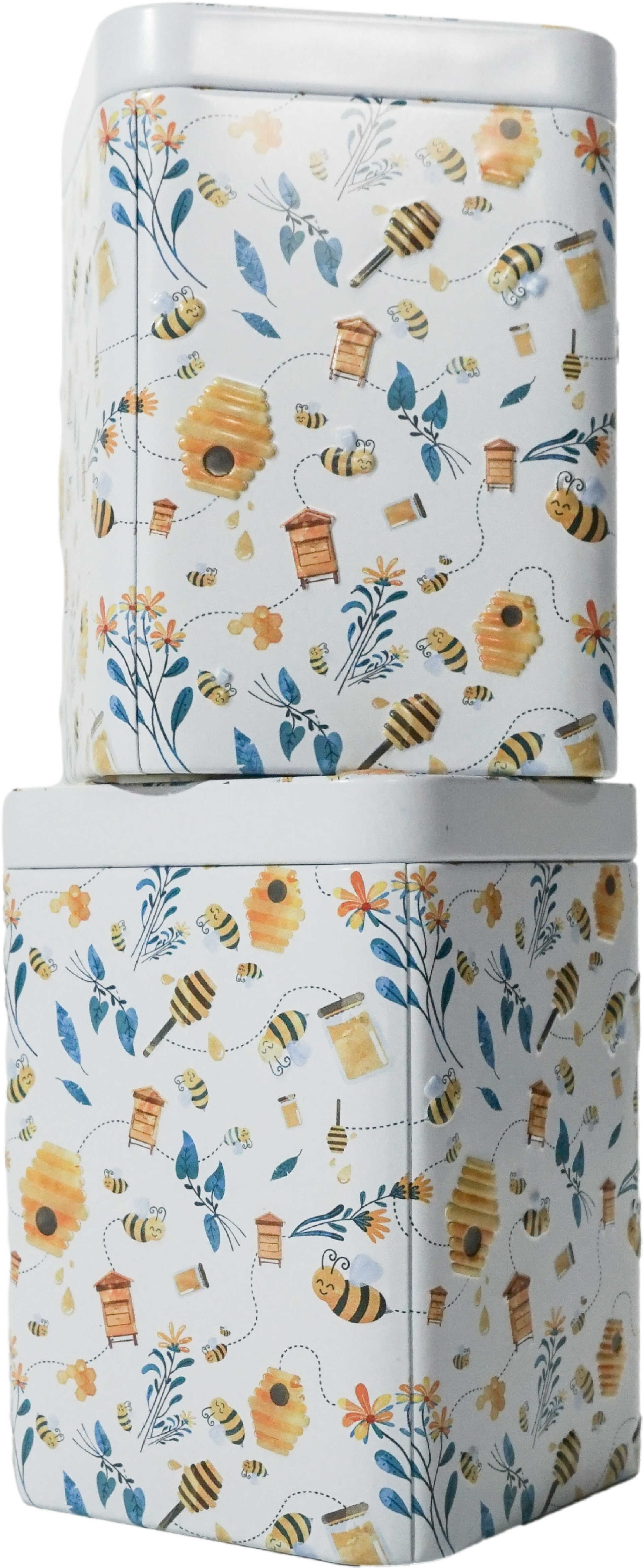 Dose "Carla", 100 g Weißblech, eckig, Stülpdeckel matt, geprägt 7,3 x 7,3 x 10 cm