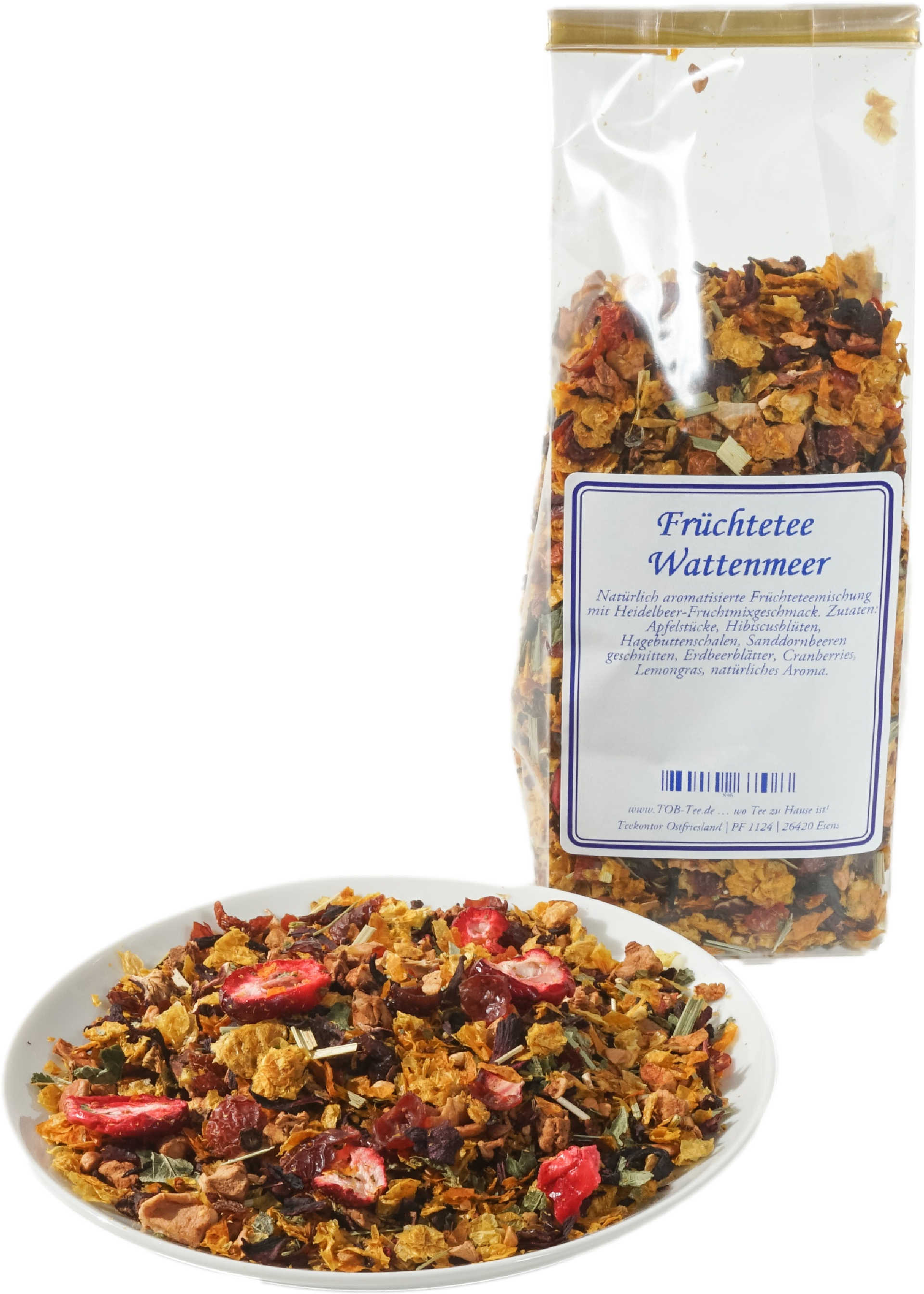 Natürlich aromatisierte Früchteteemischung mit Heidelbeer-Fruchtmixgeschmack. Zutaten: Apfelstücke, Hibiscusblüten, Hagebuttenschalen, Sanddornbeeren geschnitten, Erdbeerblätter, Cranberries, Lemongras, natürliches Aroma.